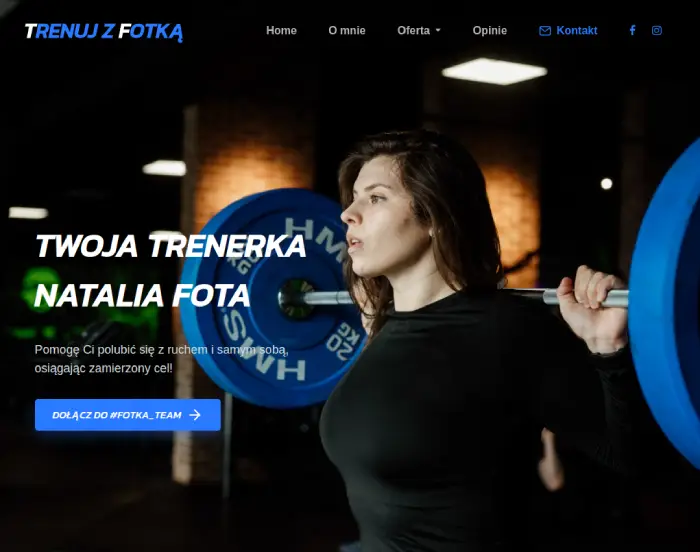 „Trenujzfotka.pl to nowoczesna, responsywna strona internetowa dla trenerki personalnej Natalii, zaprojektowana z myślą o promocji jej oferty i budowaniu marki osobistej. Strona zawiera sekcję usług, formularz kontaktowy oraz integrację z mediami społecznościowymi.”